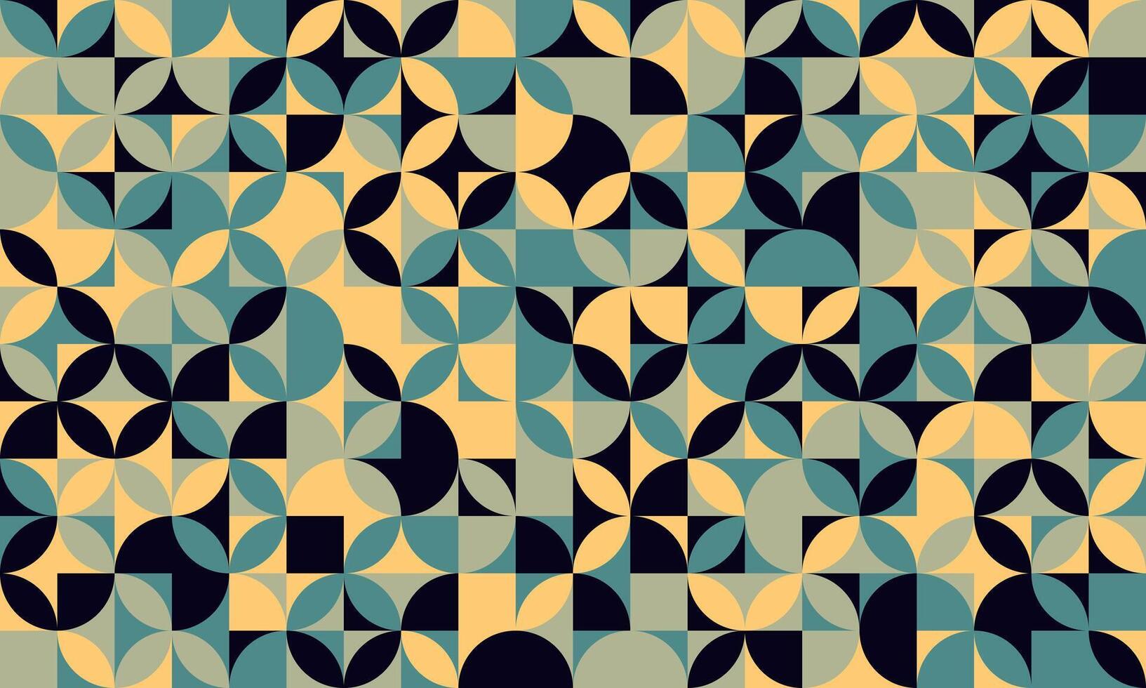 Abstract geometric seamless pattern. Midcentury modern design with teal, beige, and black circles and squares. Perfect for backgrounds, textiles, and website design. Pro Vector