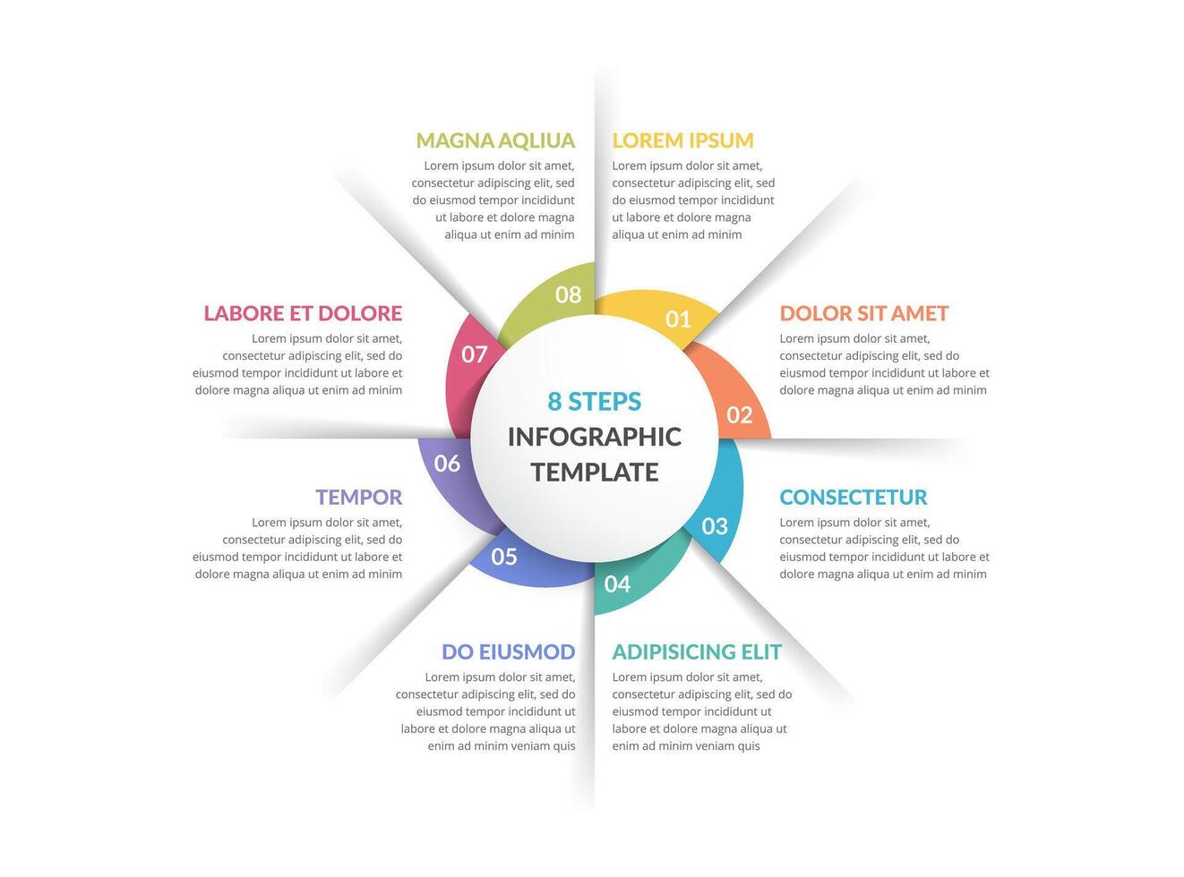 Circlular infographic template with eight steps or options, process chart Pro Vector
