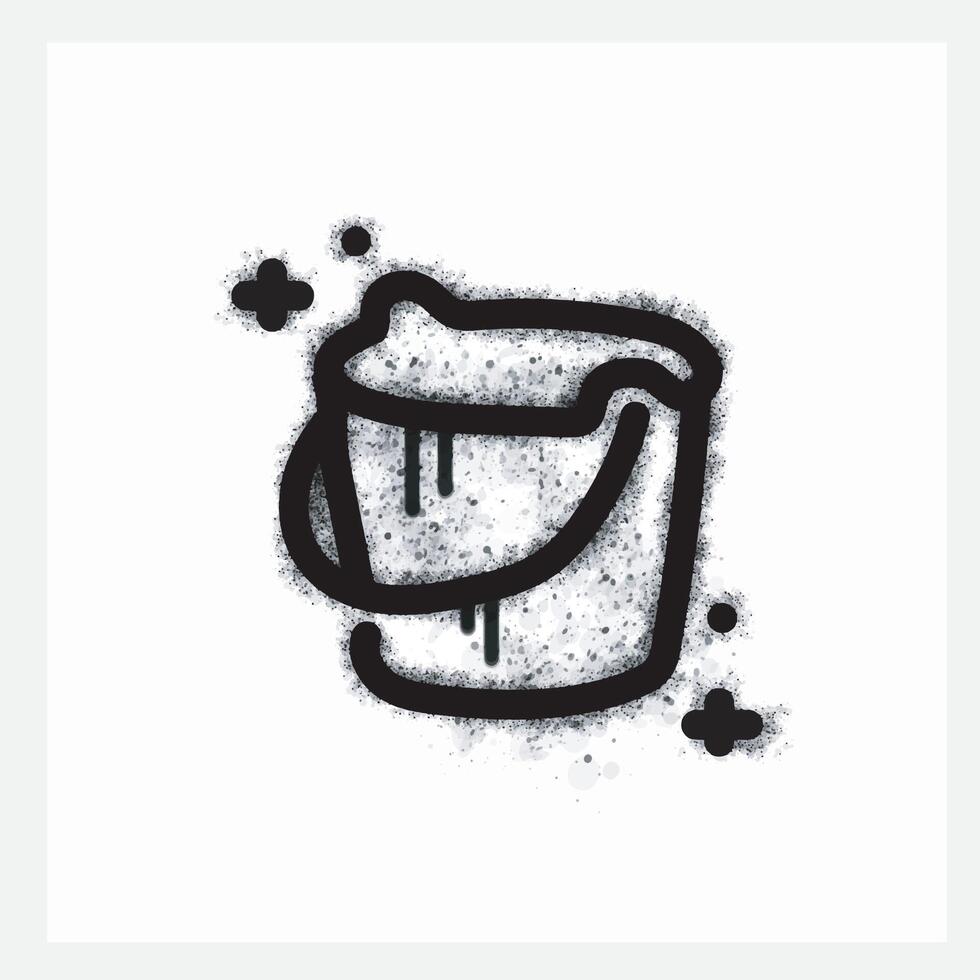 A graffiti bucket icon with a spray can isolated on a white background. A graffiti bucket icon with a spray can in black on white. V Pro Vector