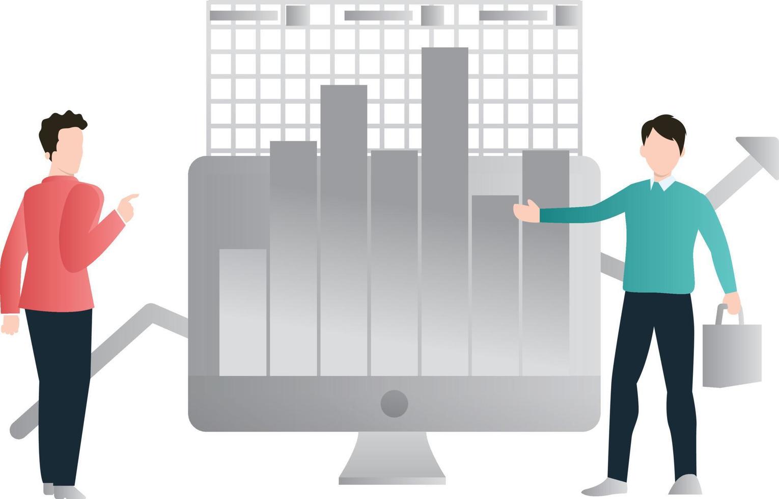 There are two boys discussing about bar graphs. Pro Vector