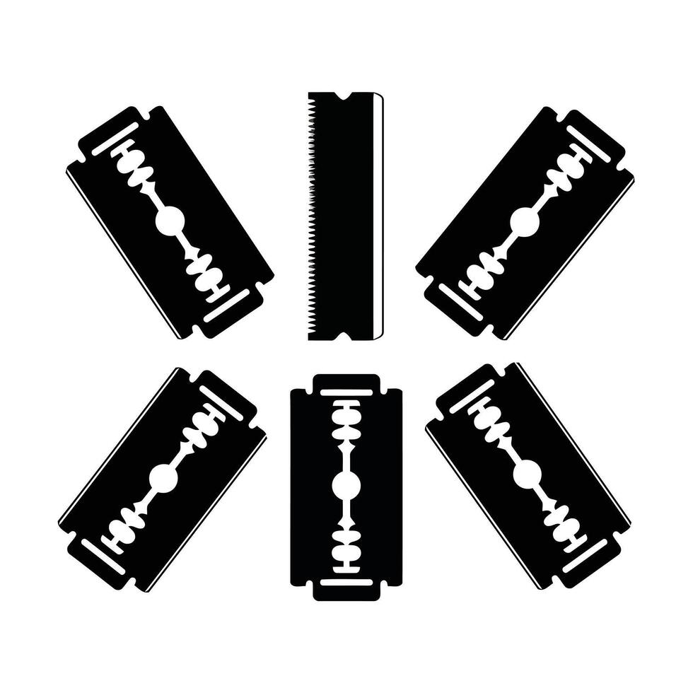 Sharp, Black and White Razor Blades Arranged in a Striking Pattern on White Background A Graphic Design Image Pro Vector