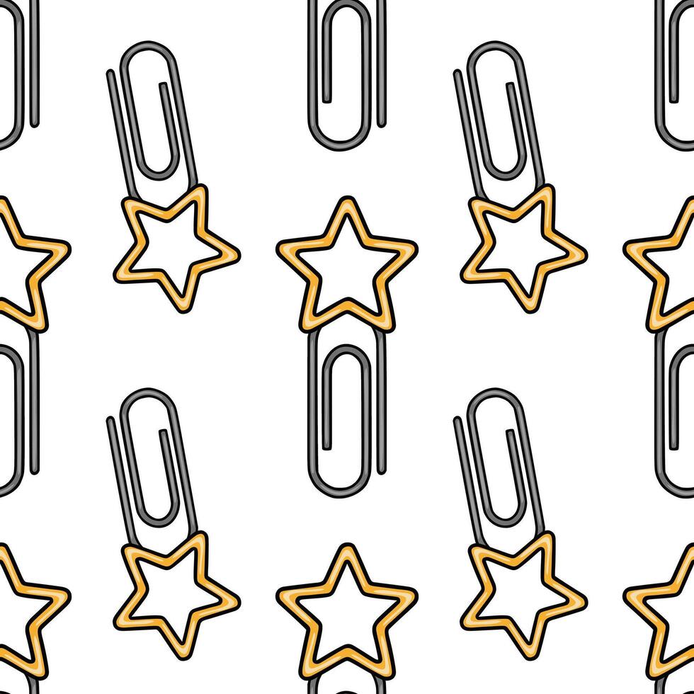 Seamless pattern featuring playful grey paperclips adorned with golden stars, creating a cheerful and organized design ideal for stationery or office-themed projects. Pro Vector
