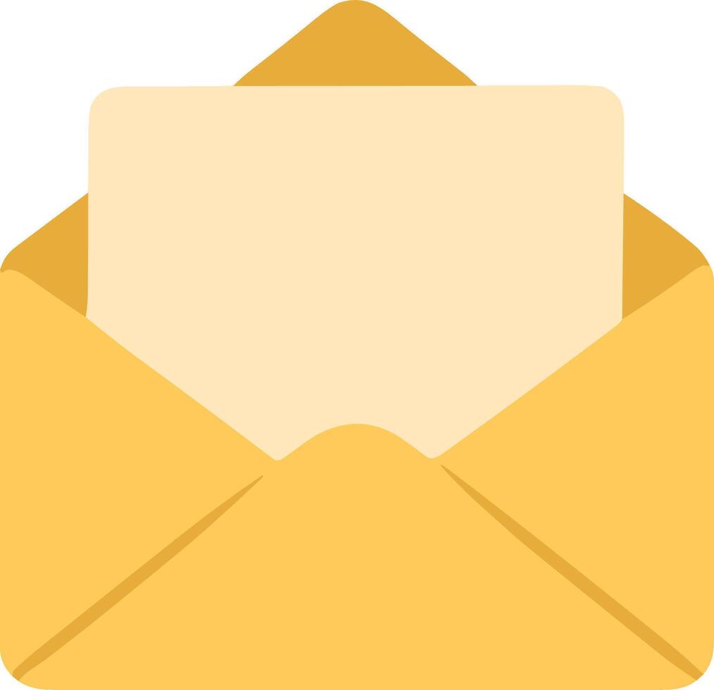 Flat Design Opened Yellow Envelope with Paper Sheet Communication Element Pro Vector