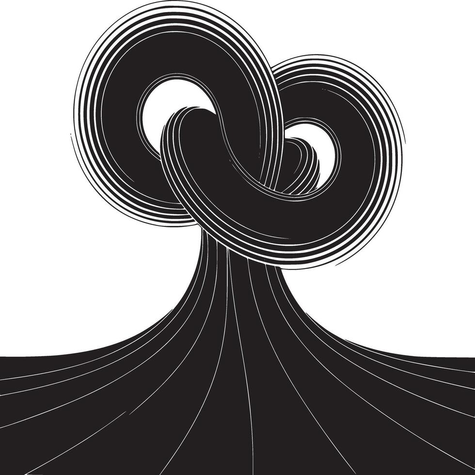 A monochrome illustration of intertwining circles with lines extending downwards on a white background Pro Vector