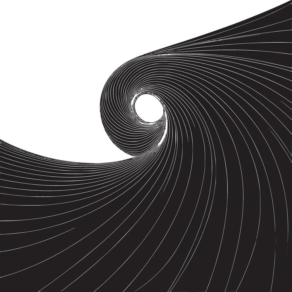 A black and white abstract vortex design with converging lines forming a swirling funnel shape Pro Vector