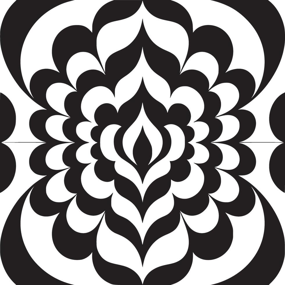 A symmetrical black and white pattern with repeating floral and curved shapes in a square format Pro Vector