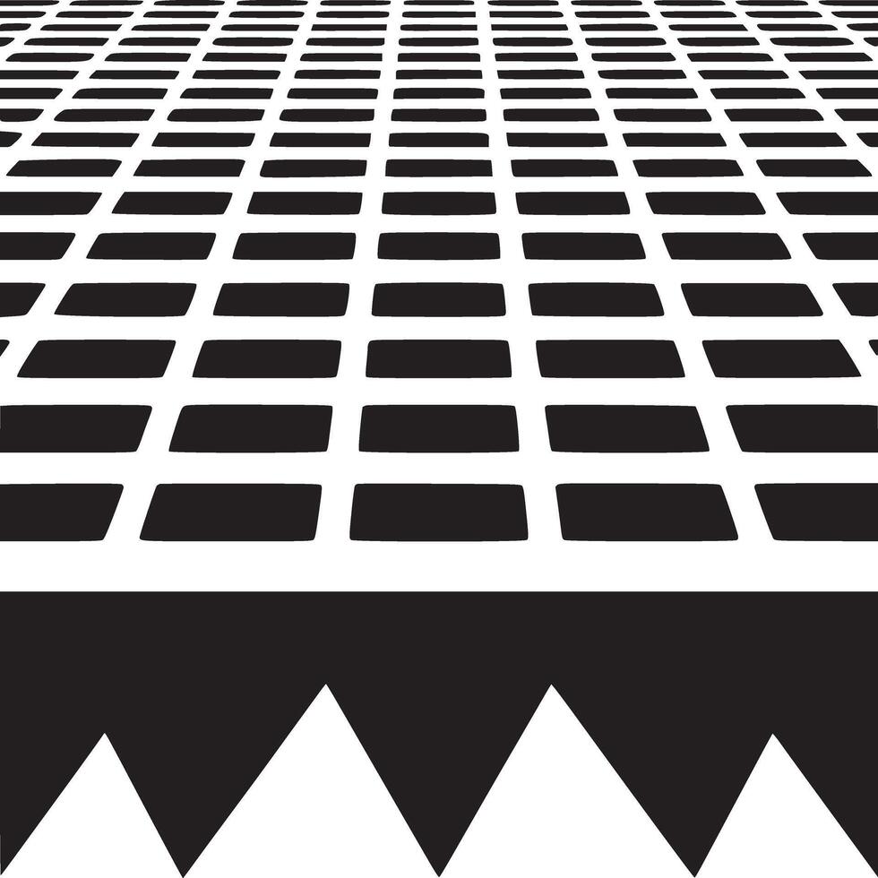 A black and white grid pattern receding into the distance with jagged shapes in the foreground Pro Vector
