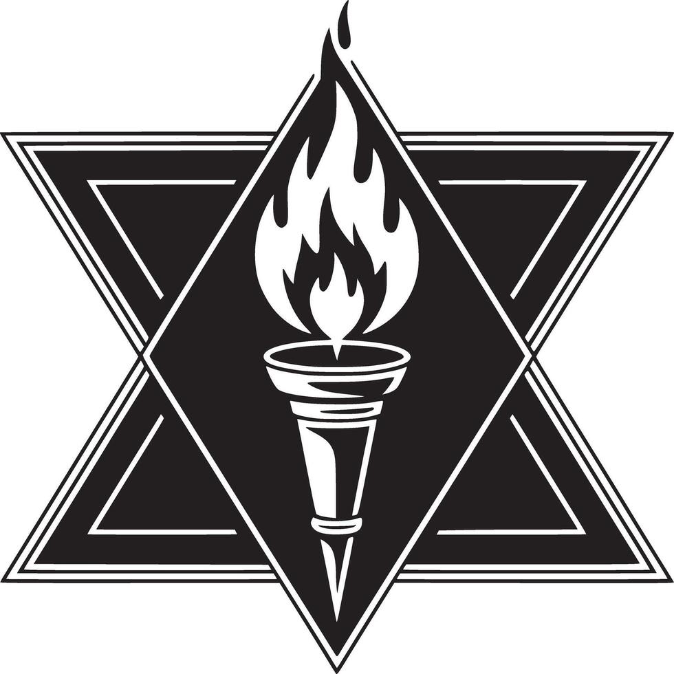 Striking Star of David with a flaming torch, a bold symbol of faith and resilience in monochrome Pro Vector