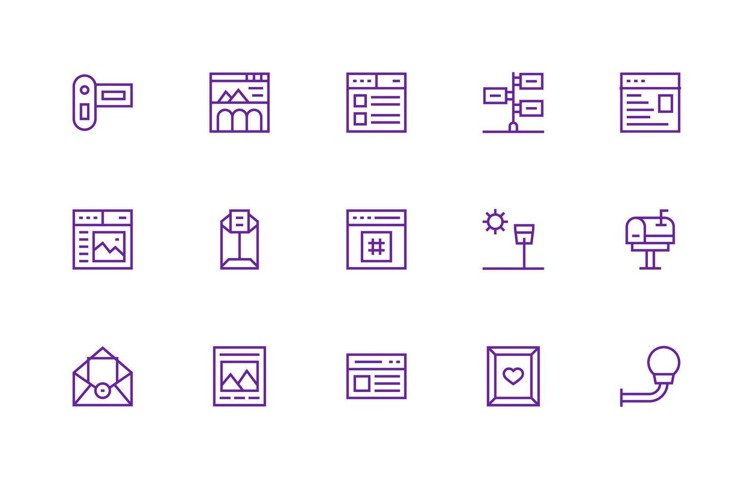 Post Icon Set with 15 Regular Line Graphics Free Vector