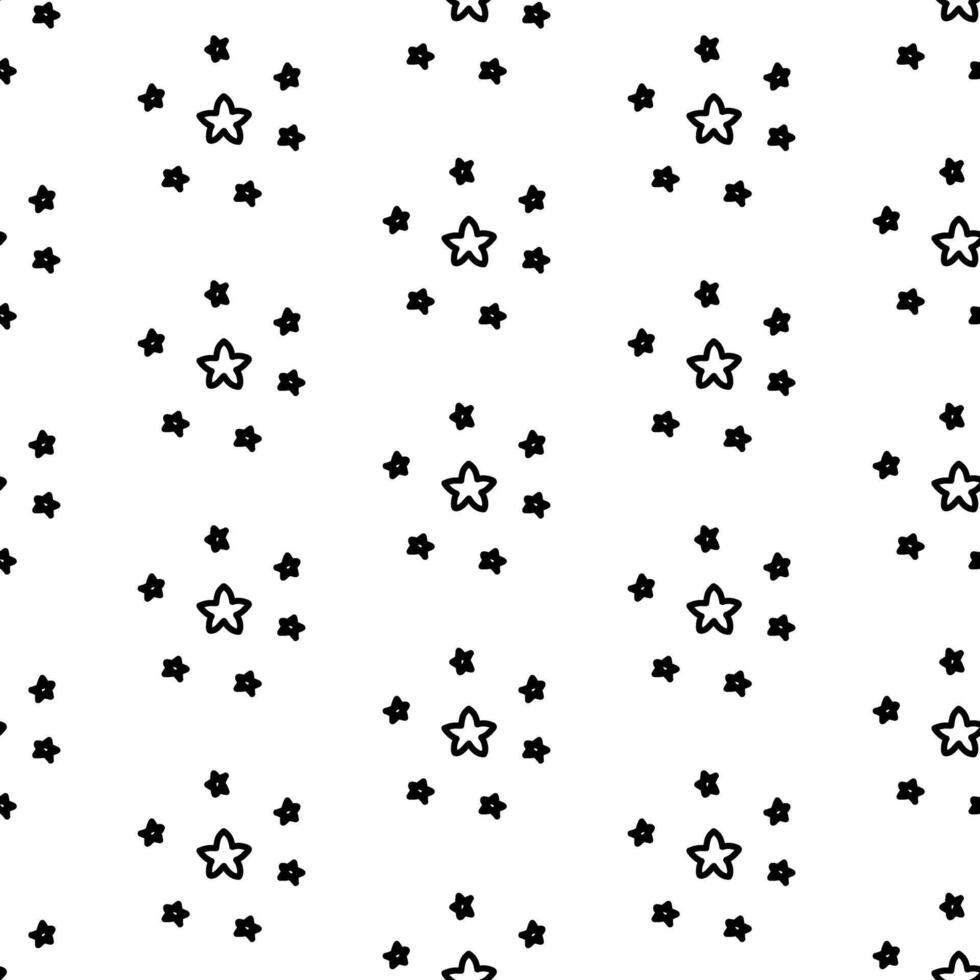 Pattern in the form of mini five-pointed stars in a group. Convex stars. Black line on white. Seamless texture. Cute children's drawing. Shape, repeating symbol. Minimalistic linear style Pro Vector