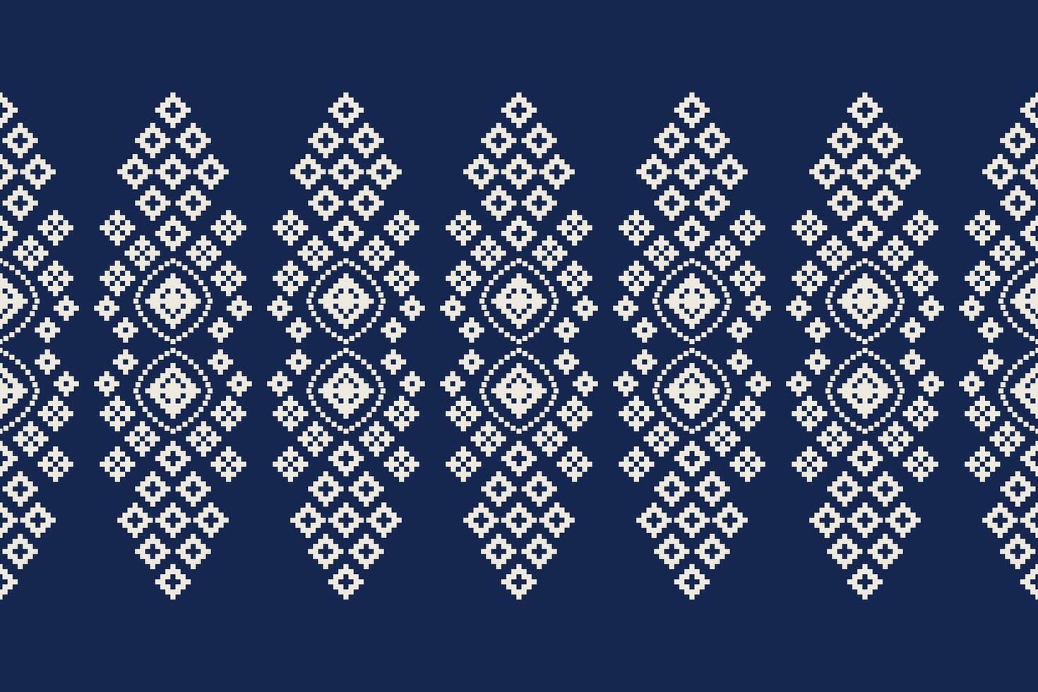 Cross stitch with blue background ethnic pattern motifs pixel style abstract texture aztec. Pro Vector