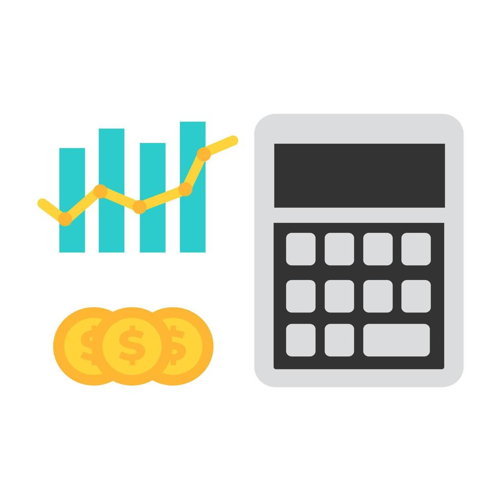 financial vector icon with diagram, graph, calculator and dollar coin Pro Vector and Pro SVG