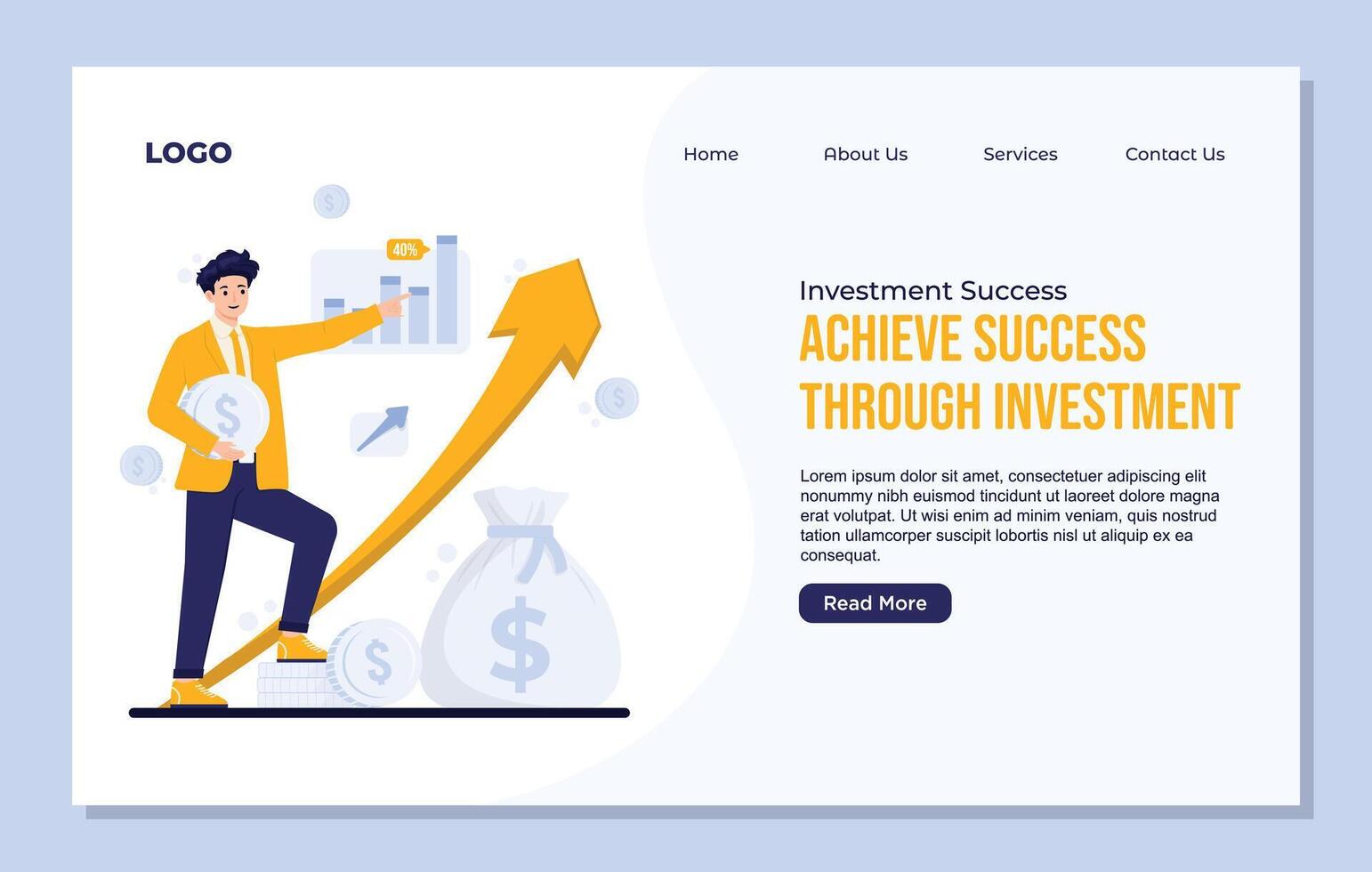 Flat design landing page template of Investment financial profit report management website and mobile website development. Pro Vector