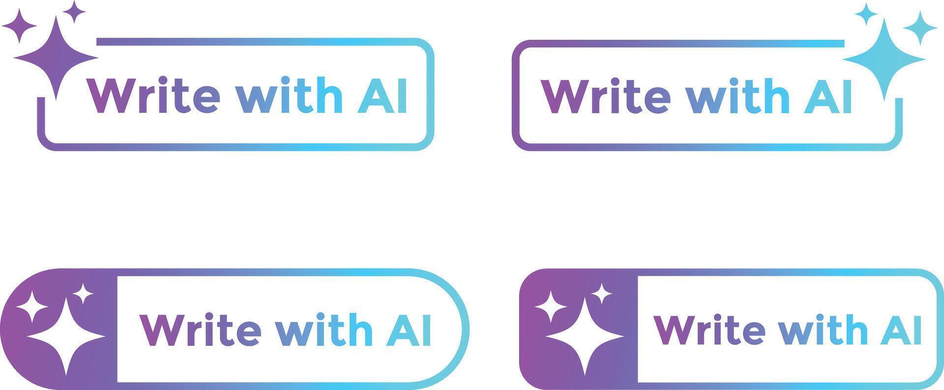 Write with ai button. Stars sparkle icon. Machine learning text generator. Chatbot assistant symbol. Generate tool design Pro Vector