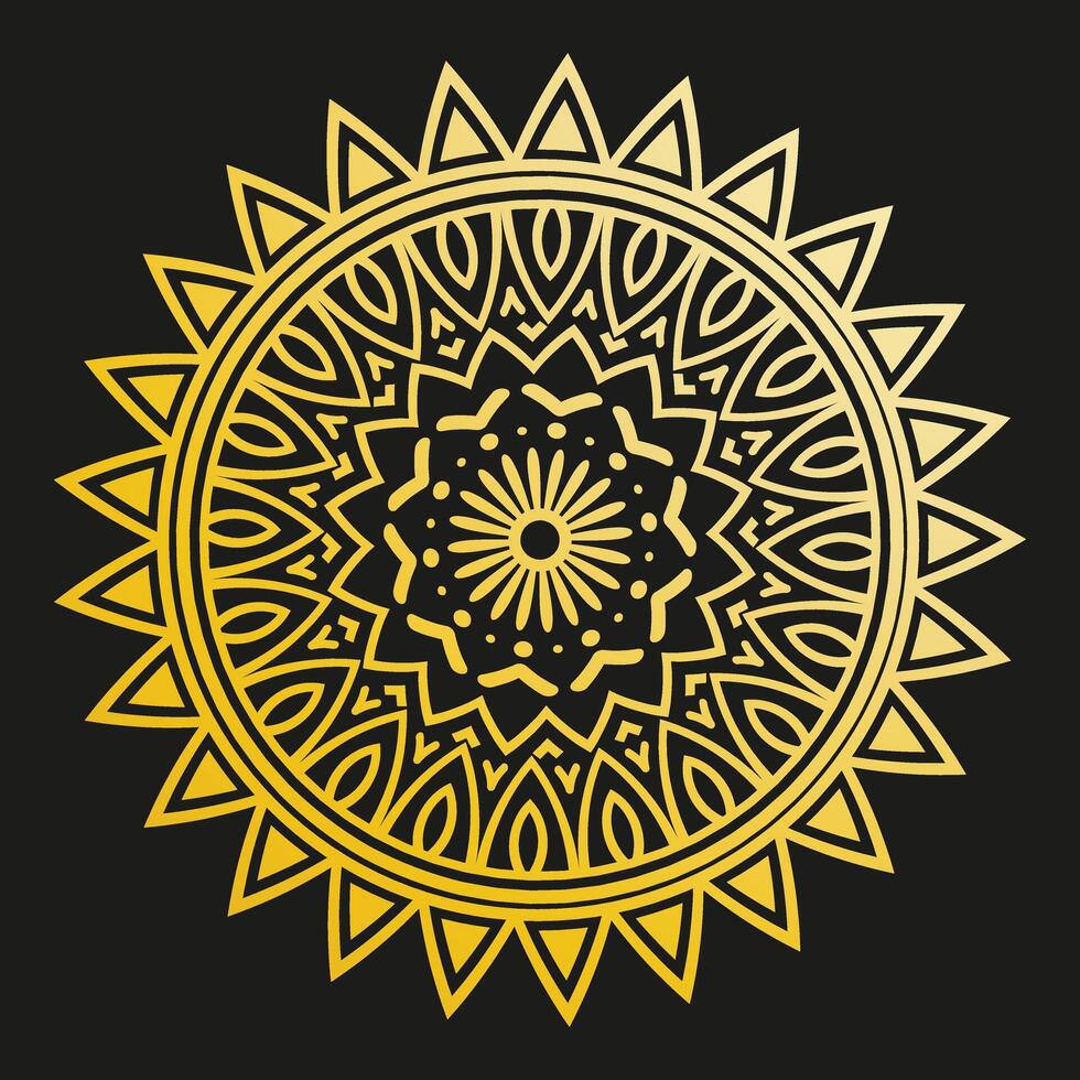 Elaborate golden mandala with sharp triangular points on black Pro Vector