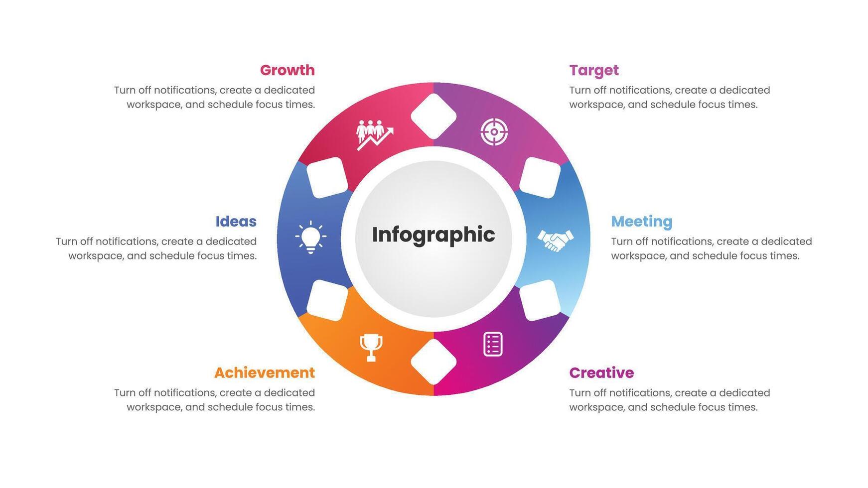 Circle Infographic Diagram with Workflow Steps and Business Process Timeline Template vector