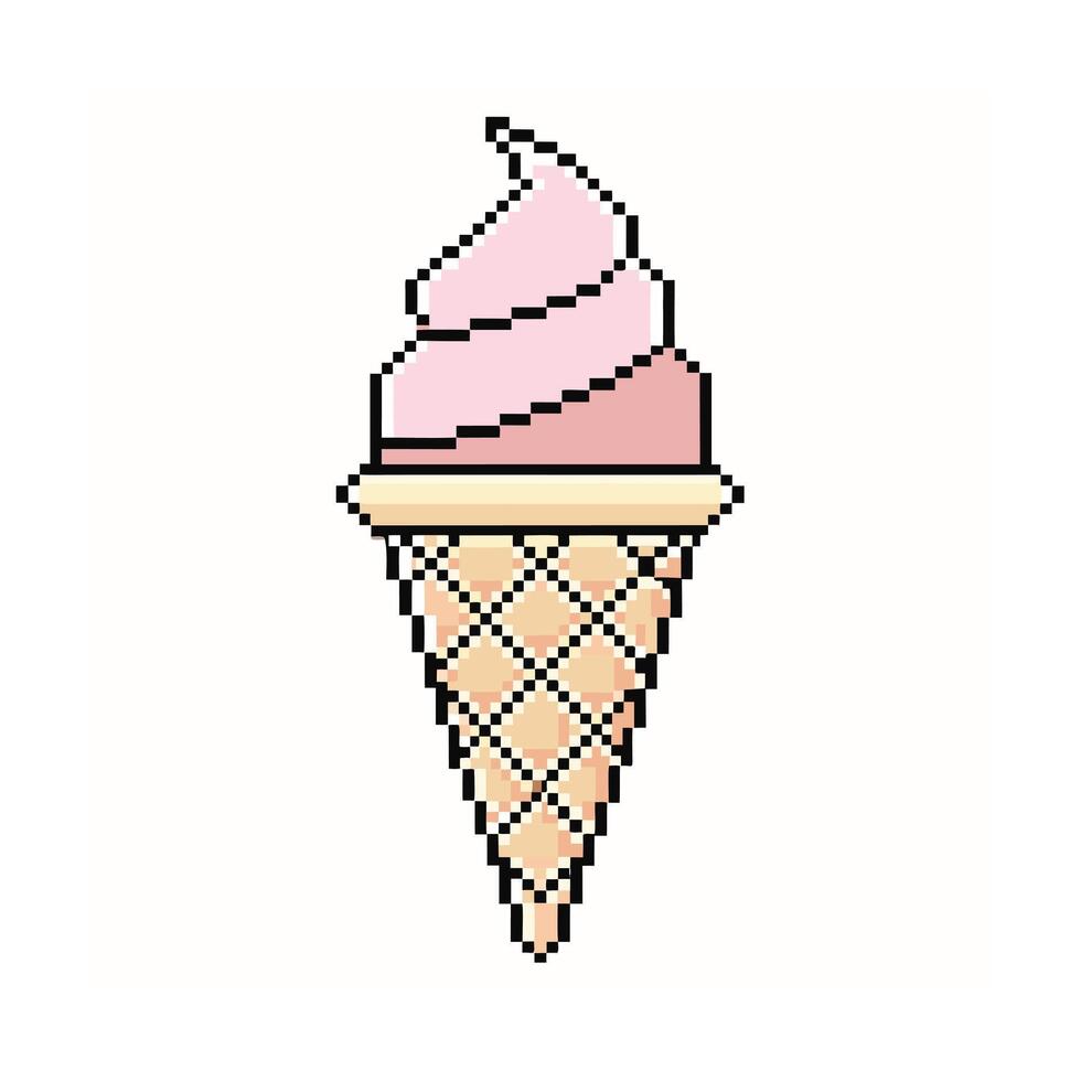 Pixel art pink soft serve ice cream in a waffle cone Pro Vector