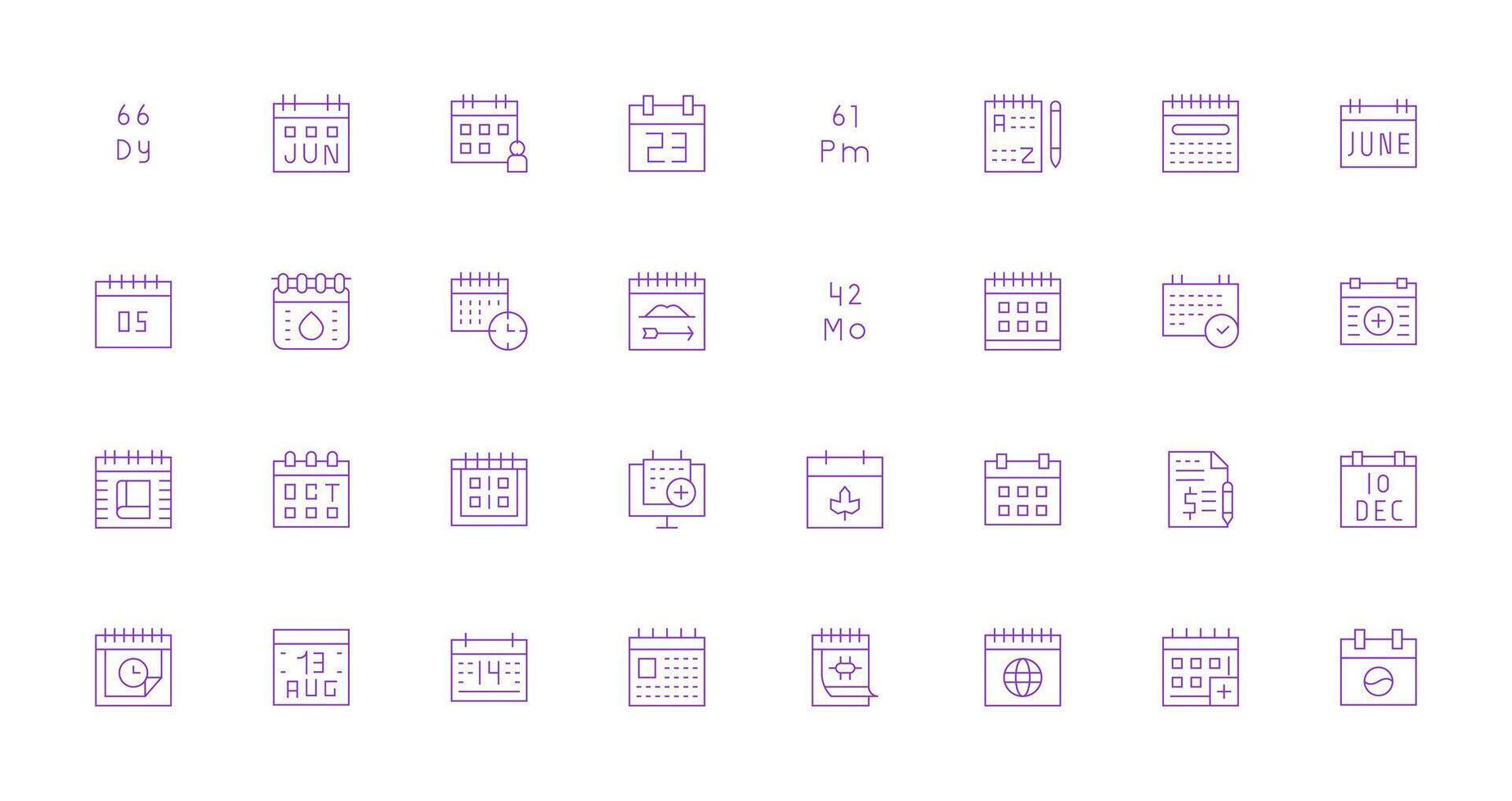 Thin Line Icons from Date Set with 32 Vectors Free Vector