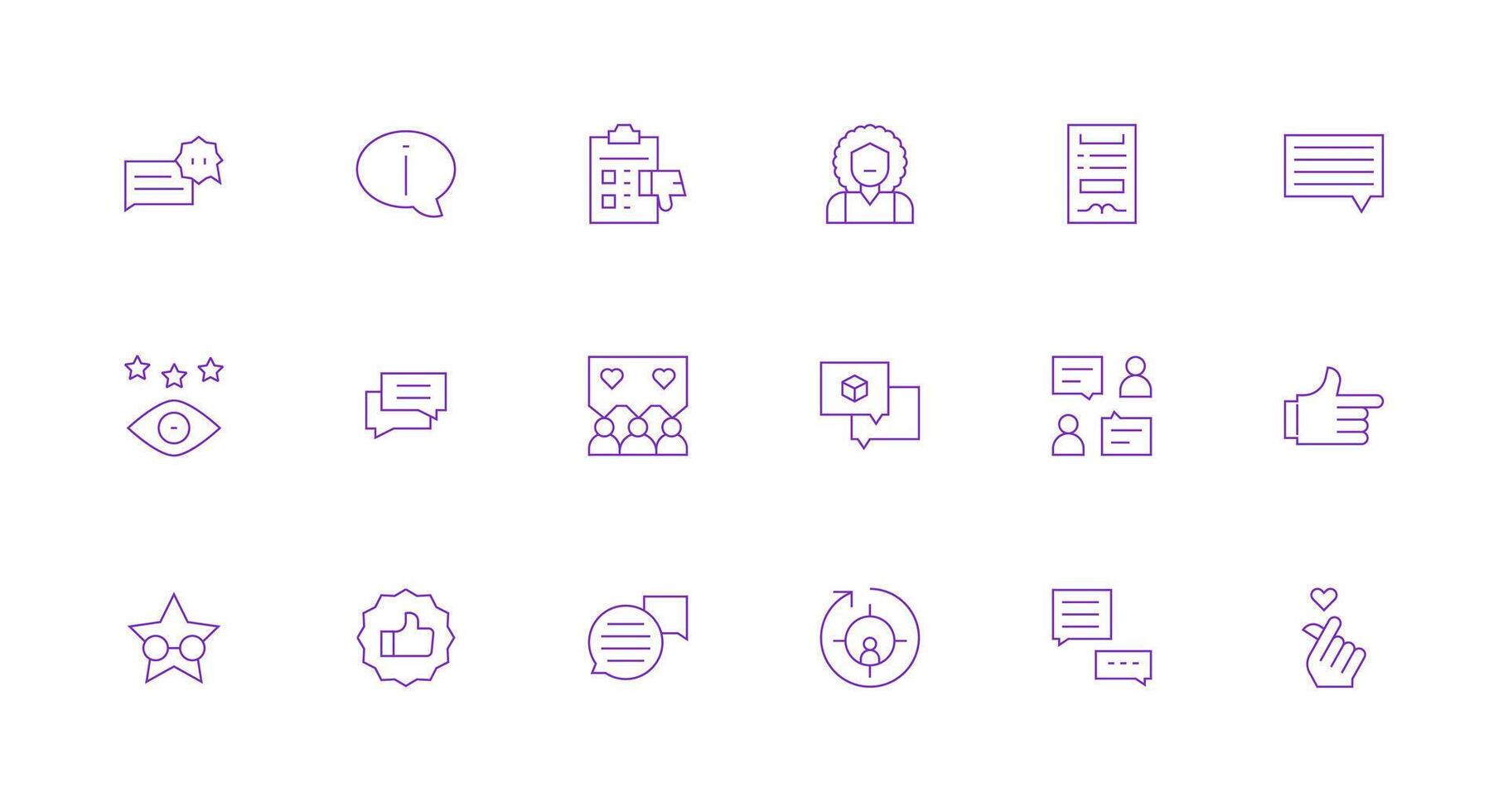 Feedback Icon Set with 18 Minimal Line Graphics Free Vector