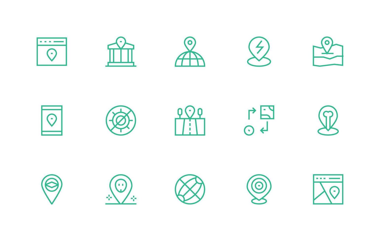 Geo Icon Set with 15 Regular Line Graphics Free Vector