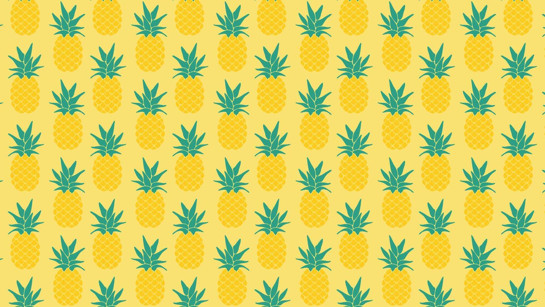 Fun and cute pineapple pattern on a bright yellow background. Perfect as a digital design element, fabric, wrapping paper, or textile print Pro Vector