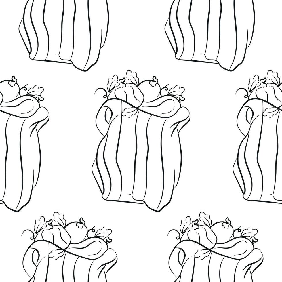 pattern with icons of a striped package with pumpkins of various shapes with leaves in a sketch style, for autumn designs, packaging or textiles Pro Vector
