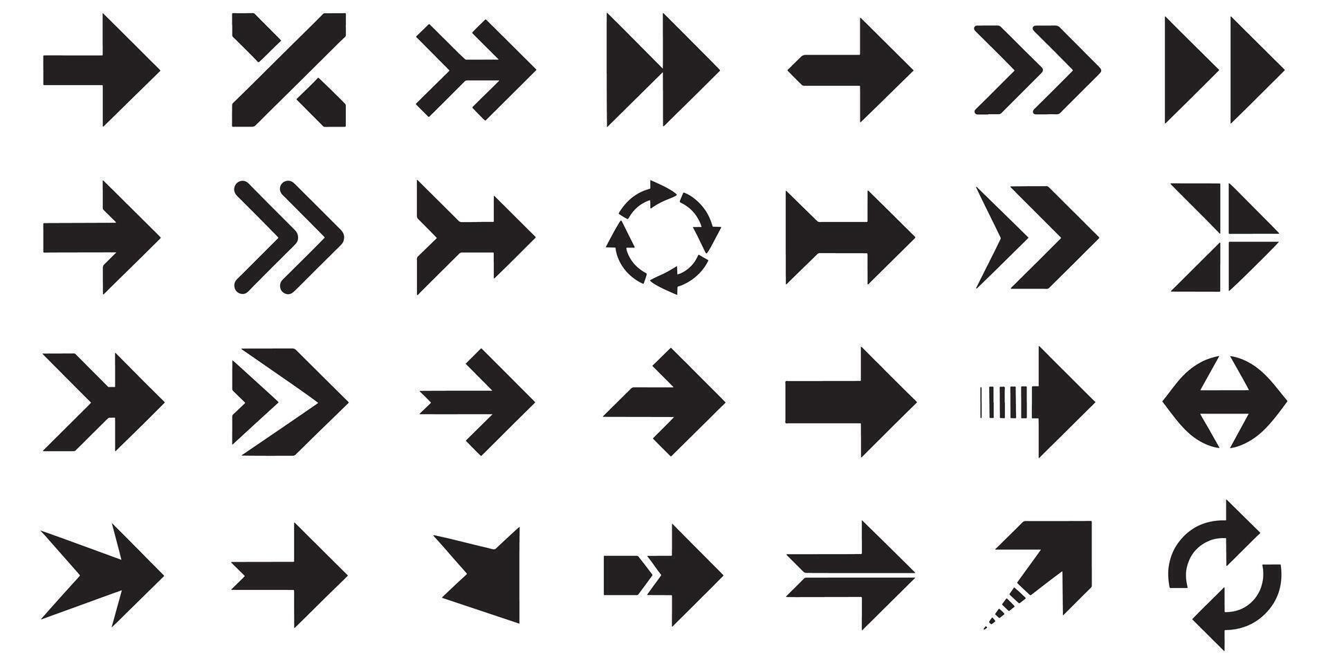 Diverse Arrow Collection A Assortment of Directional Symbols for Graphic Design and Wayfinding Applications in Black and White Pro Vector