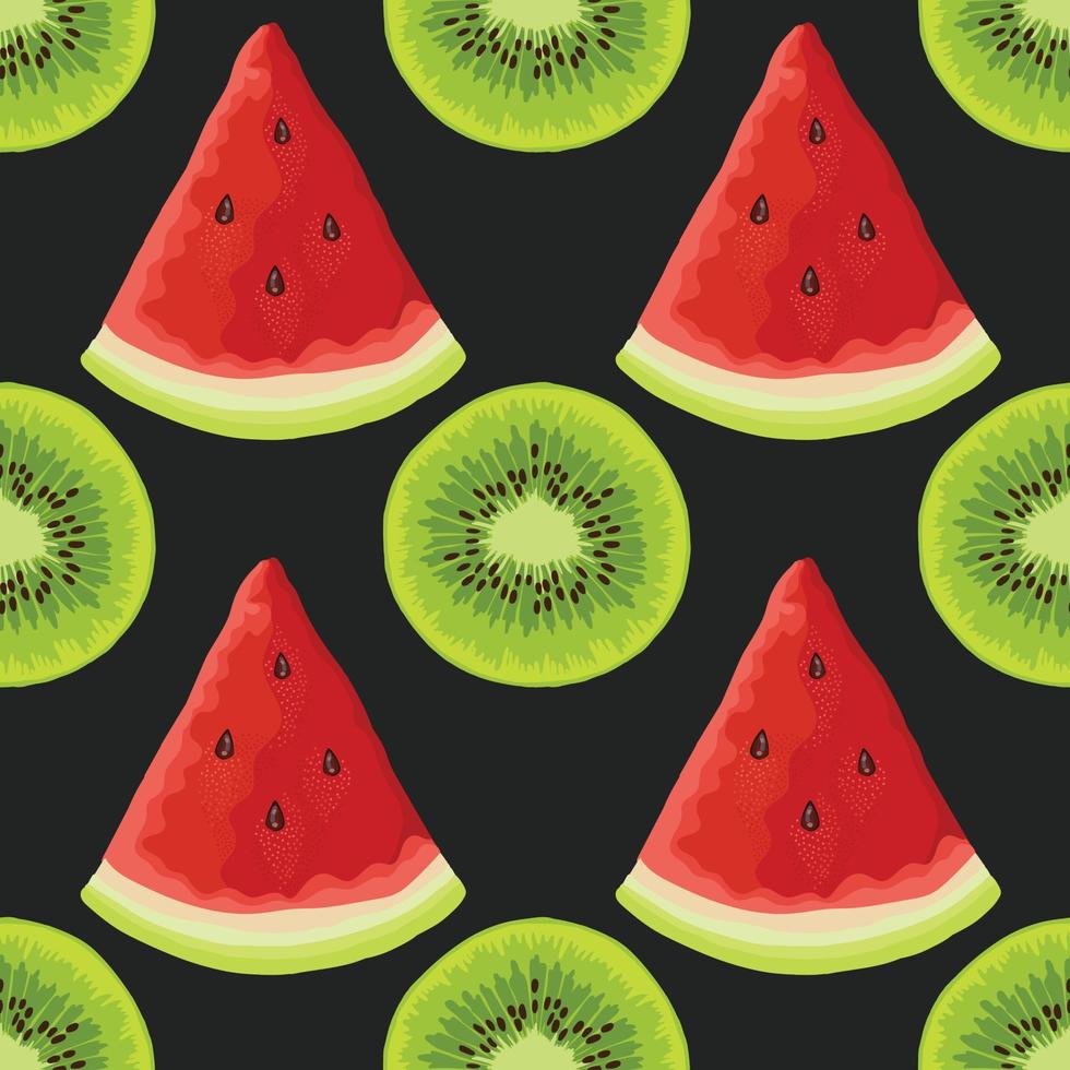 watermelon and kiwi hand draw fruits and vegetables pattern design Pro Vector