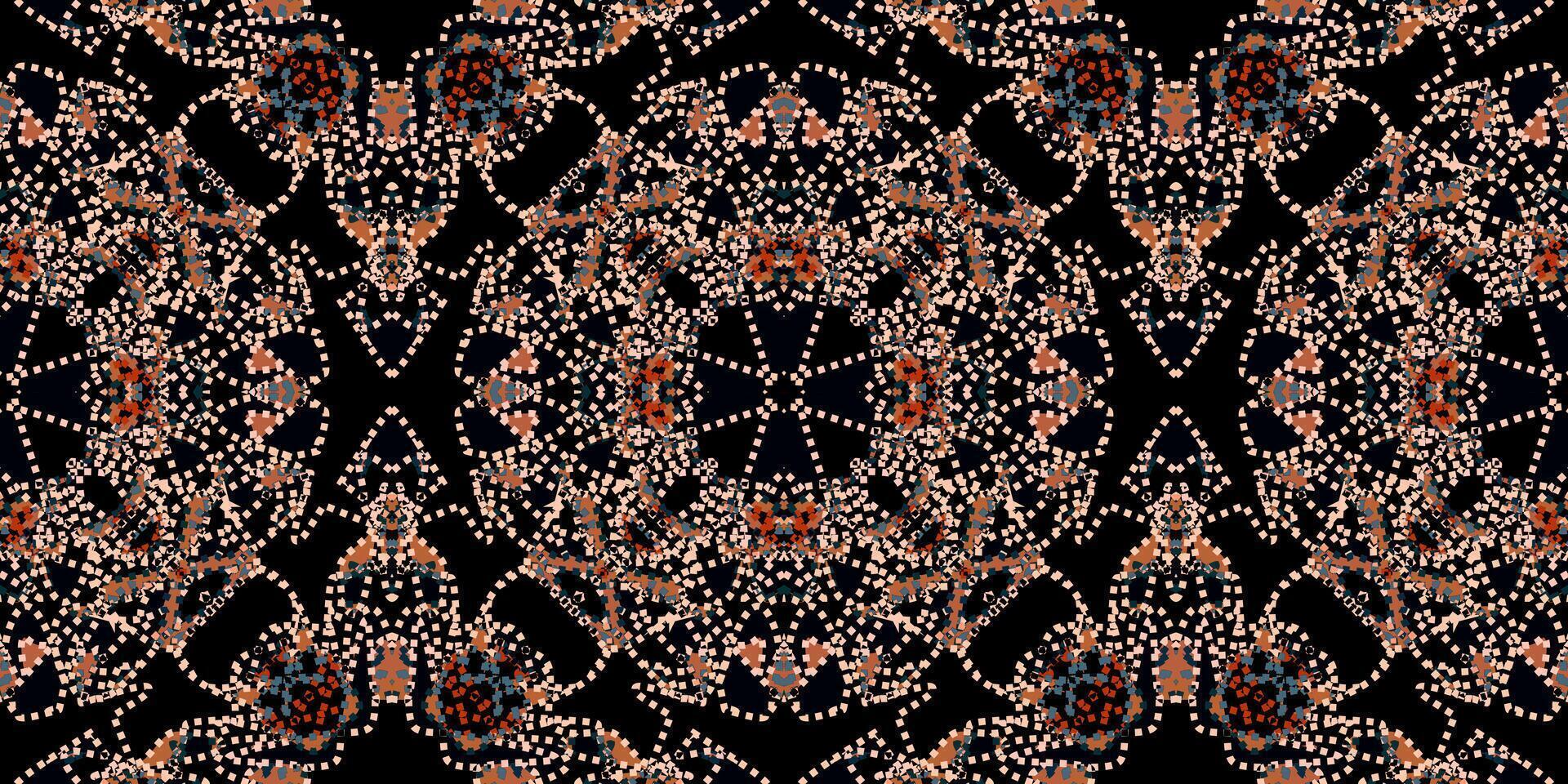 luxurious motif pattern. Seamless texture with abstract sparkling or glittering appearance. abstract dotted kaleidoscope pattern on black background. fashionable textile design. print texture Pro Vector