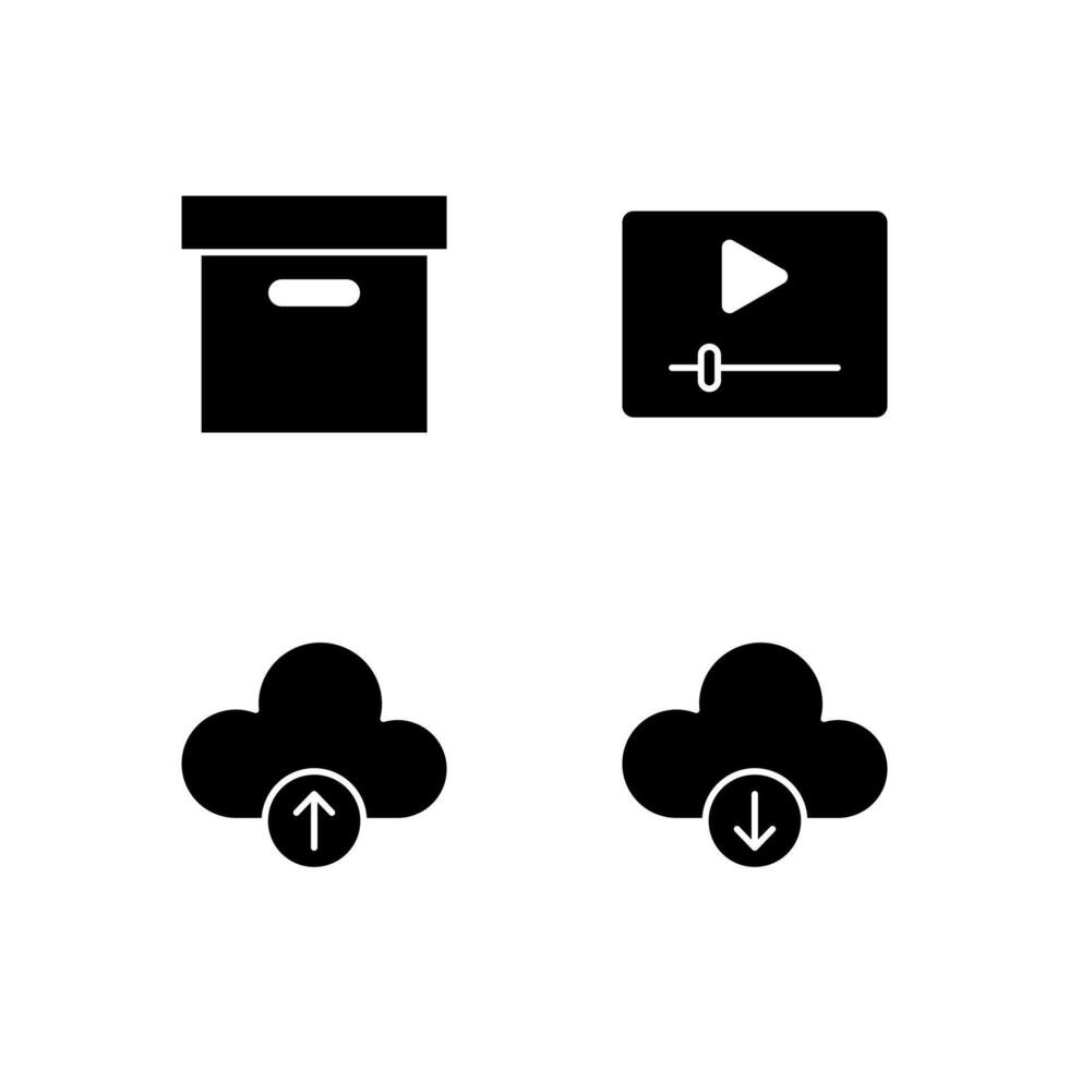 Archive Cloud Upload Cloud Download and Media Player Solid Icon Set for Mobile Application vector
