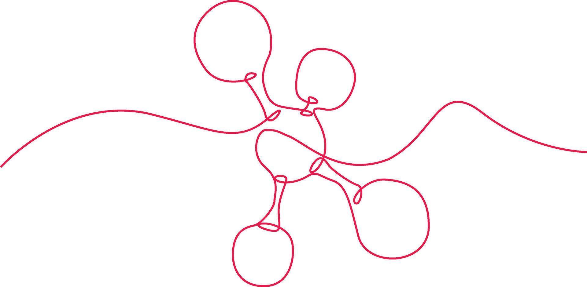 continuous line drawing depicts a molecular structure with interconnected spheres, showcasing a minimalist artistic representation. Pro Vector