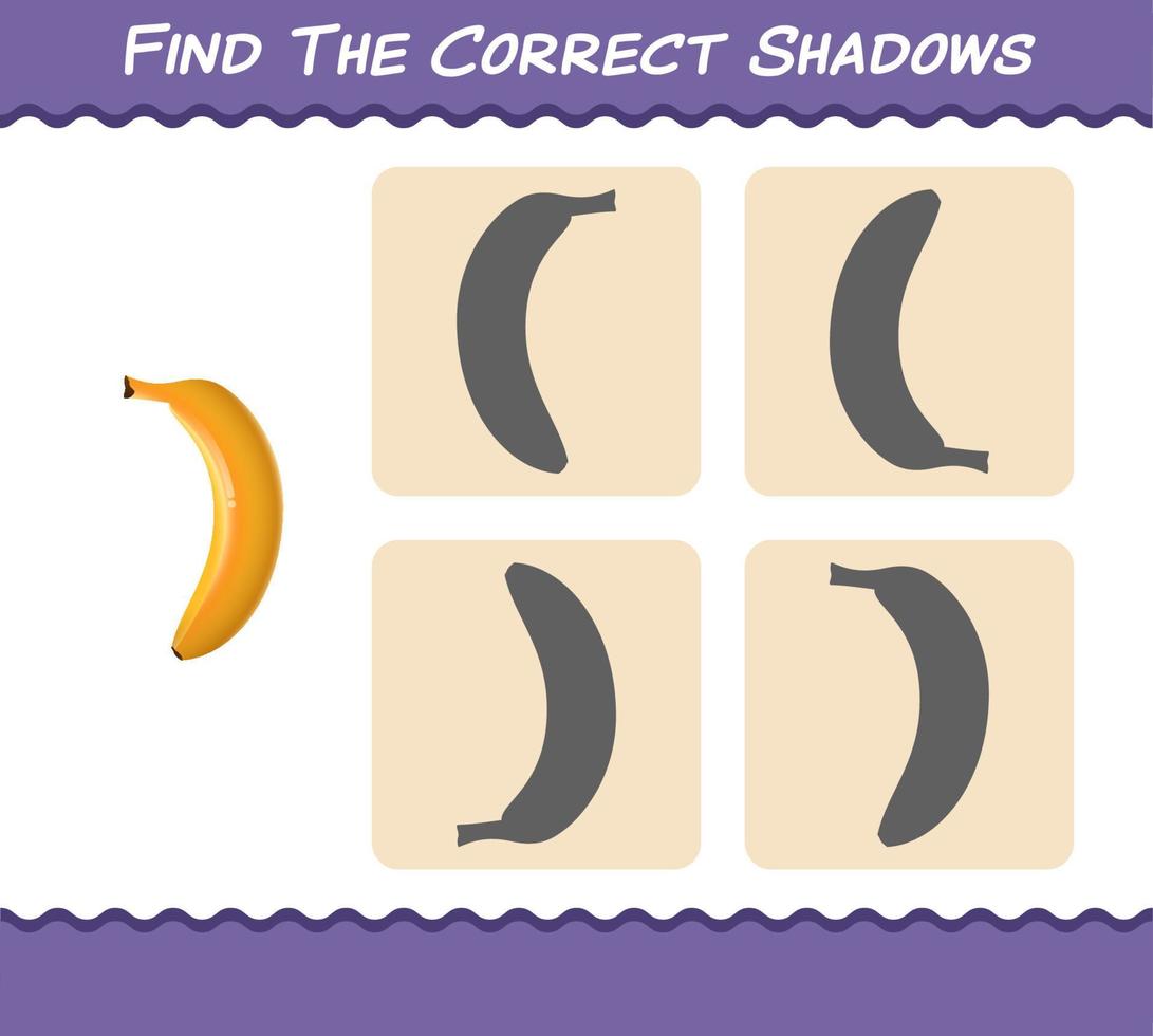 Find the correct shadows of cartoon banana. Searching and Matching game. Educational game for pre shool years kids and toddlers vector