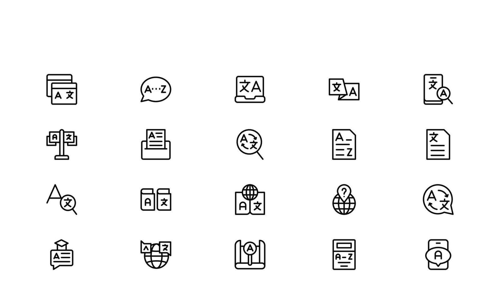 Language Science Line Icon Set in a simple, professional style. Editable and minimal graphics perfect for linguistics, education, and cultural contexts. Pro Vector