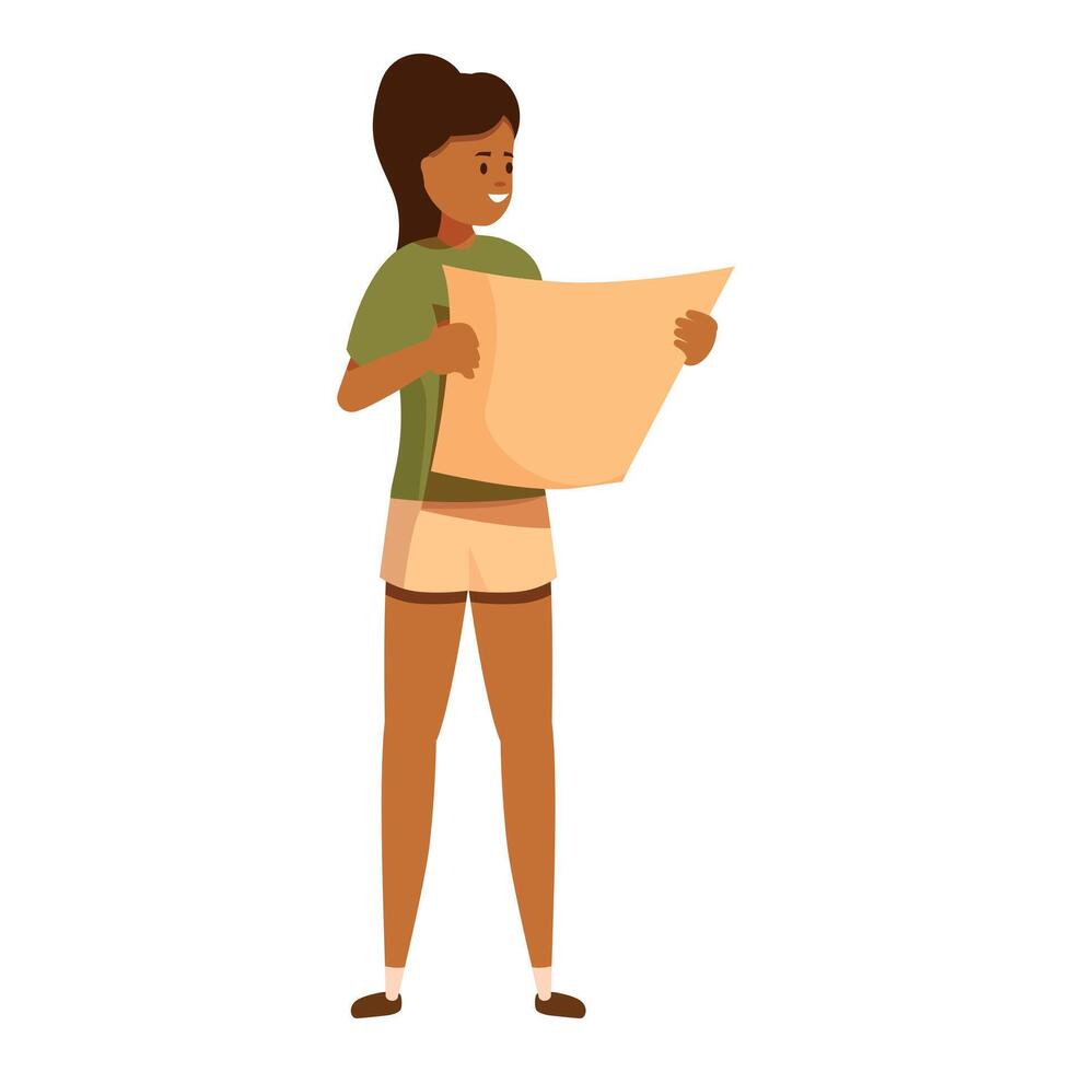 Smiling tourist reading a map for navigation and planning a trip Pro Vector
