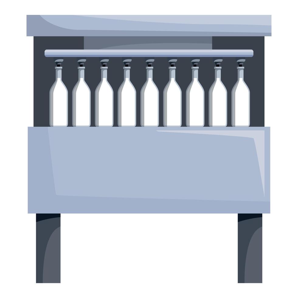 Bottling machine processing empty glass bottles in factory, filling line in operation Pro Vector