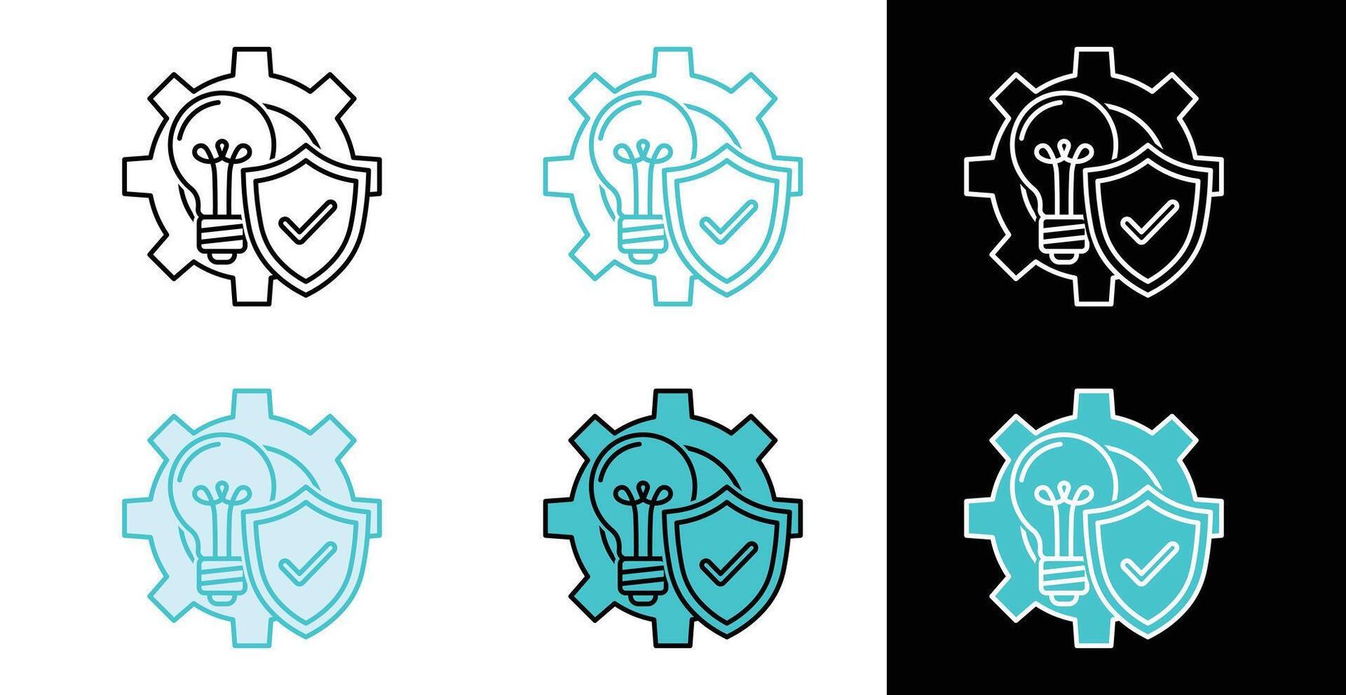 Idea protection icon, a lightbulb with a shield and a gear, symbolizing intellectual property security Pro Vector