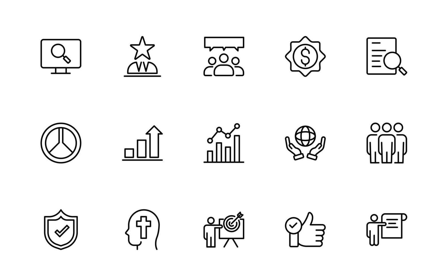 Core Values line icon Collection. Core, values, business, leadership, goals, target, client, quality, success, responsibility and quality. Pro Vector