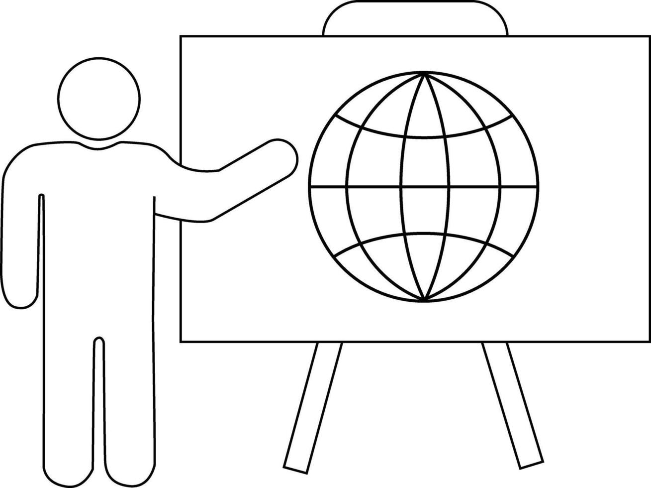 globe icon and presentation person icon on a board with a white background vector