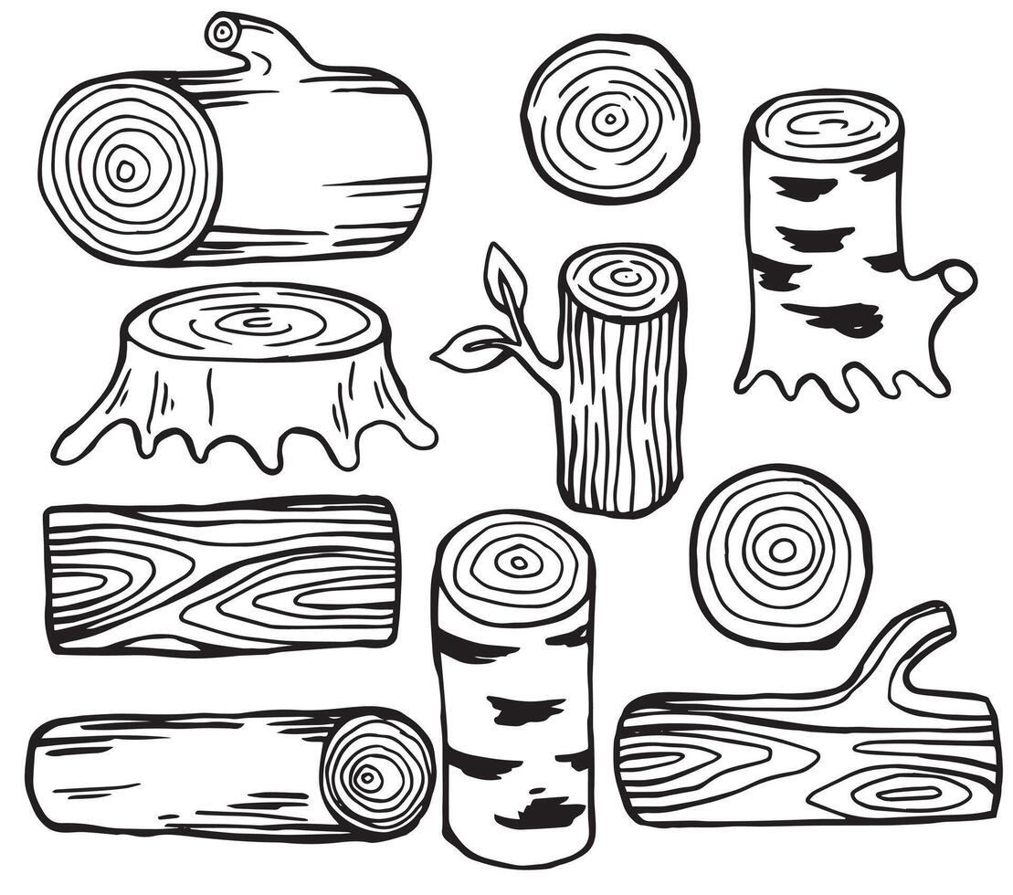 Set of logs, tree sections in simple doodle style. Pro Vector