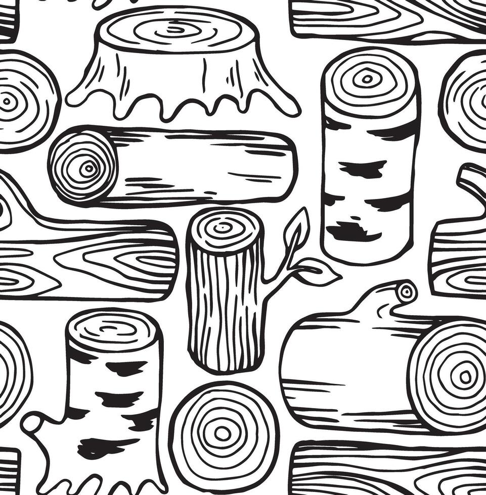 Seamless pattern of logs, tree cuts in simple doodle style. Pro Vector