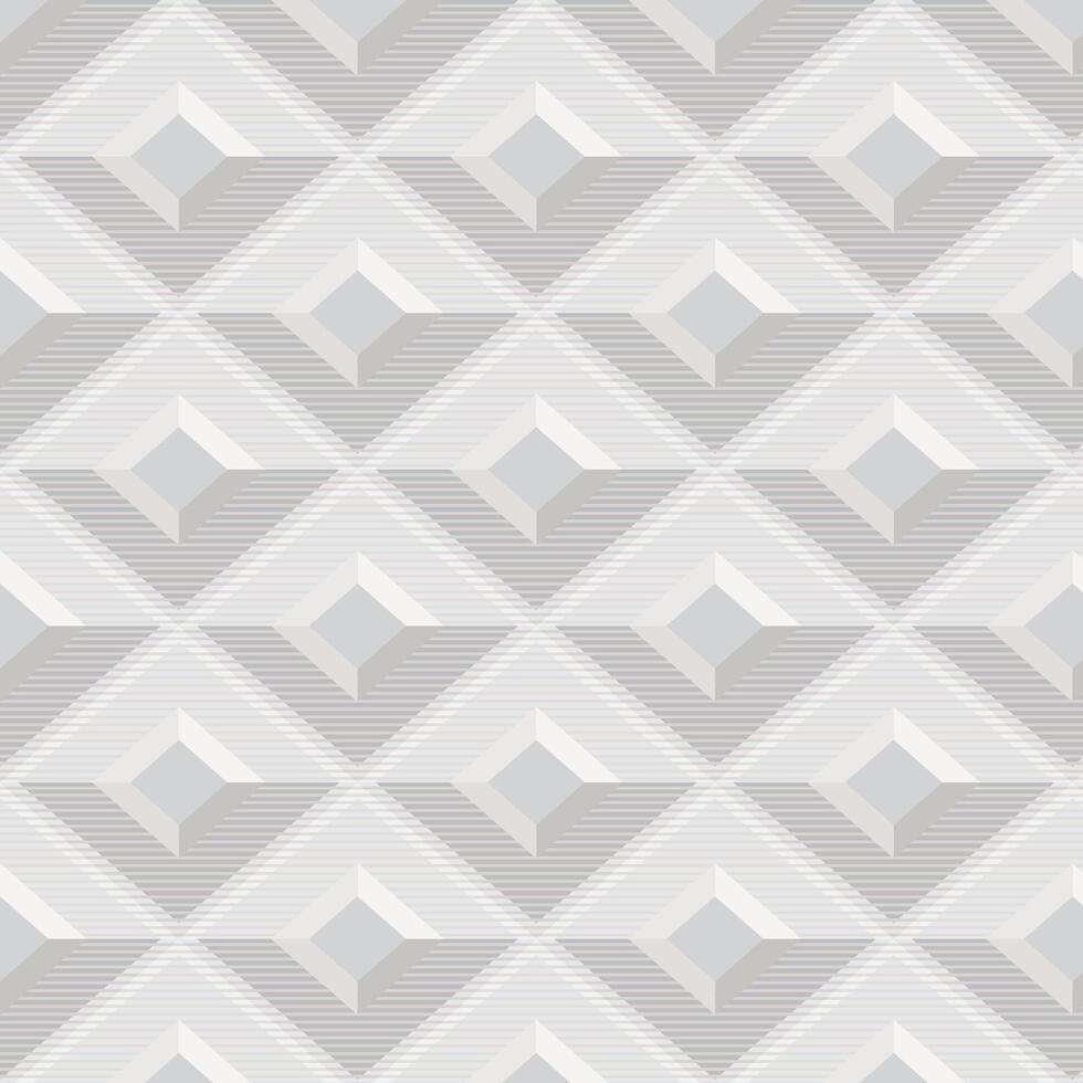 Seamless geometric pattern with 3D diamond shapes in gray and white tones. Modern abstract texture ideal for wallpaper, textiles, backgrounds, and decorative design projects. vector