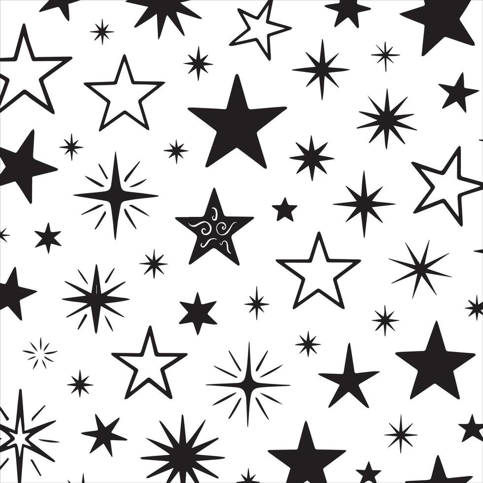 Whimsical hand drawn star pattern with varying sizes and styles on a white Pro Vector