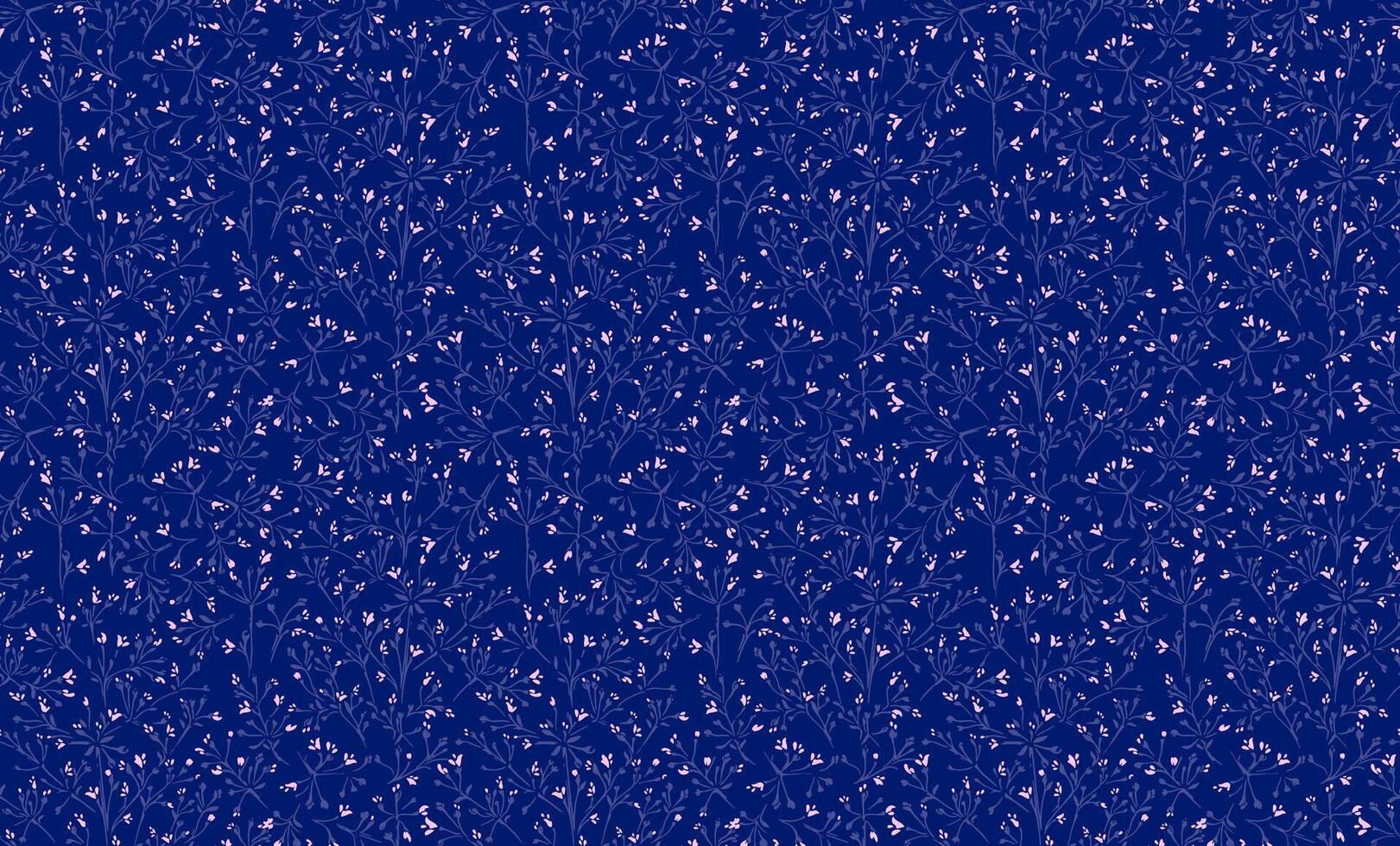 Seamless pattern with delicate abstract floral stems and small leaves on a deep navy blue background. Soft details create an elegant, sophisticated look, perfect designs, print for textiles Pro Vector