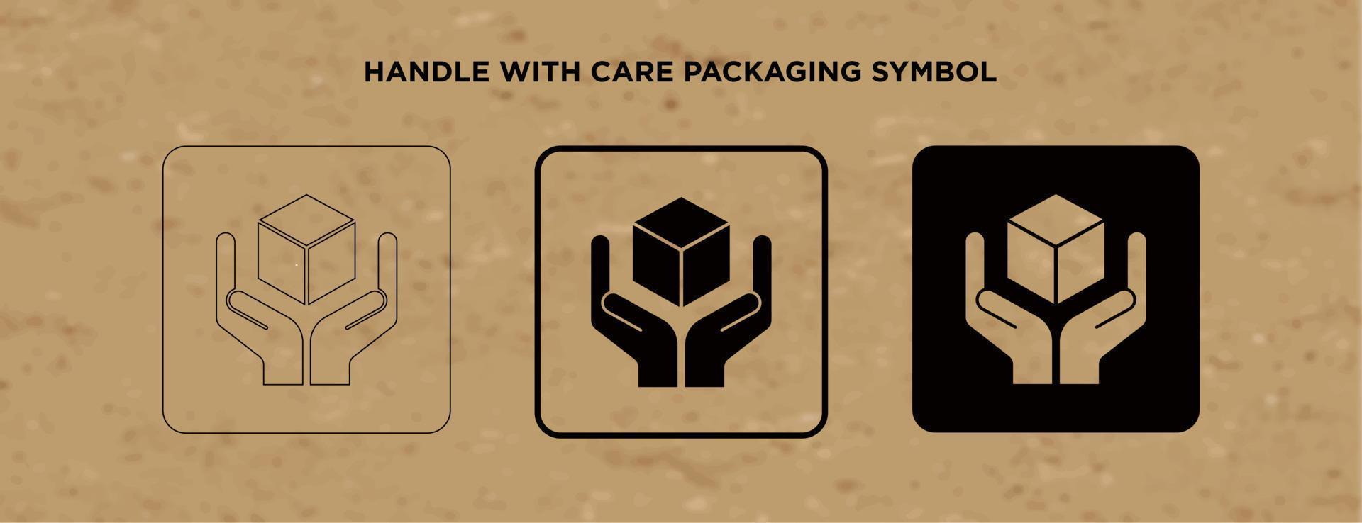 Handle with Care vector packaging symbol on vector cardboard background. Handling mark on craft paper background Pro Vector