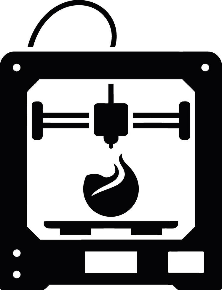 Black silhouette of a modern 3d printer creating a complex object silhouette Pro Vector