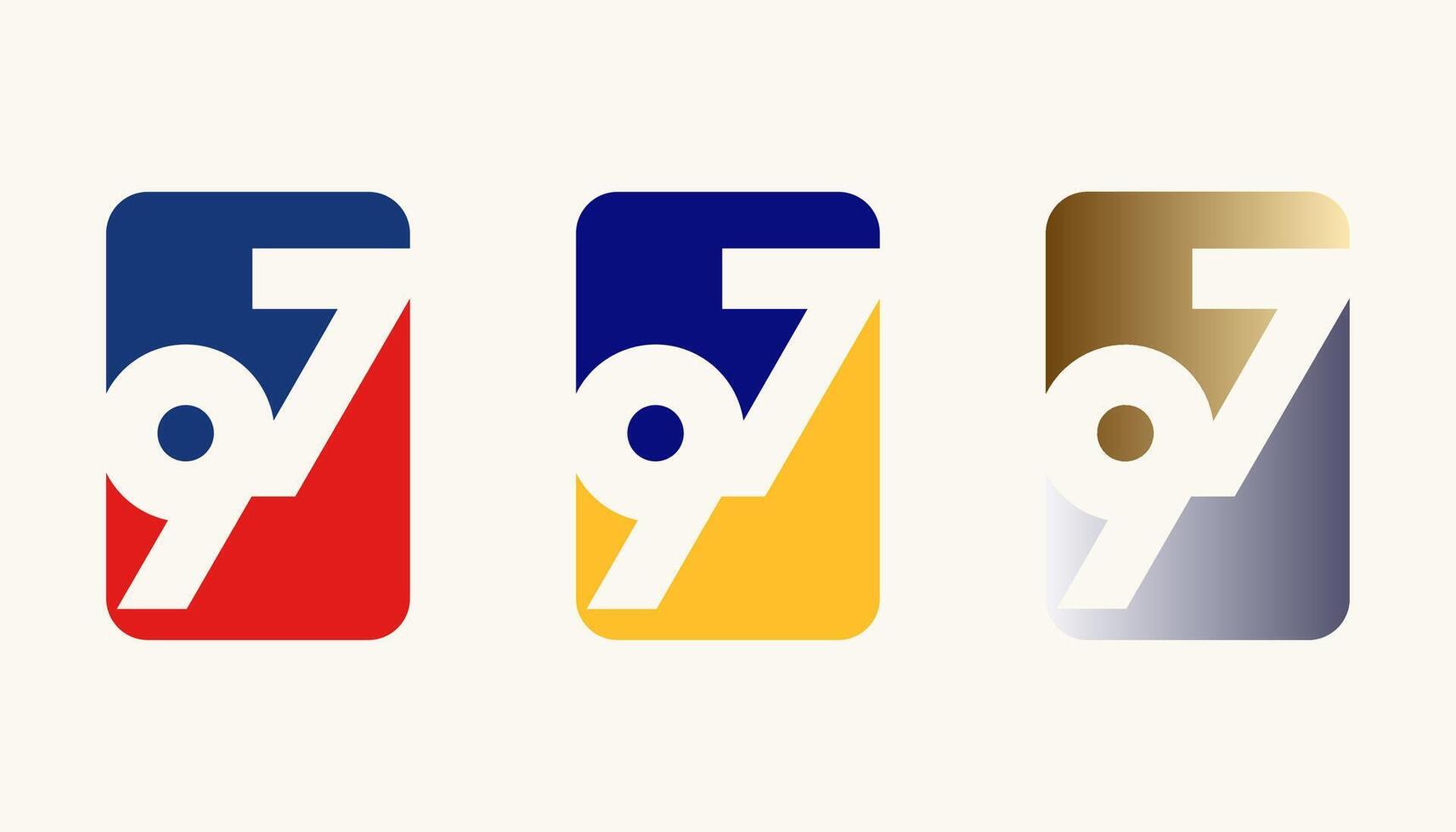 Collection of Card Design Number Anniversary 97th, 97th Happy Anniversary with Rectangle or Square shape in multiple colour variation. Pro Vector