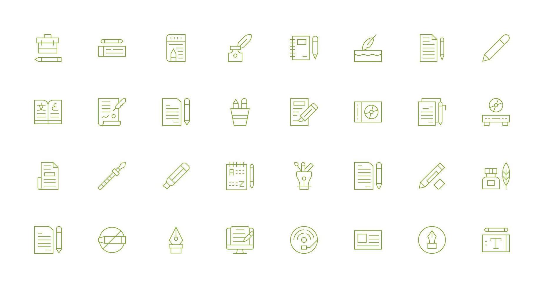 Writing Design Icons featuring 32 in Thin Line Style Digital Icon Collection vector