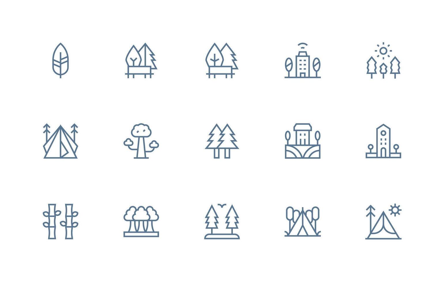 Trees Design Icons featuring 15 in Regular Line Style Theme-Based Icon Pack vector