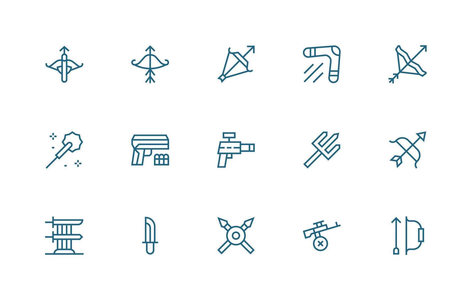 15 Icons for Weapon in Regular Line Format Neat Icon Set vector