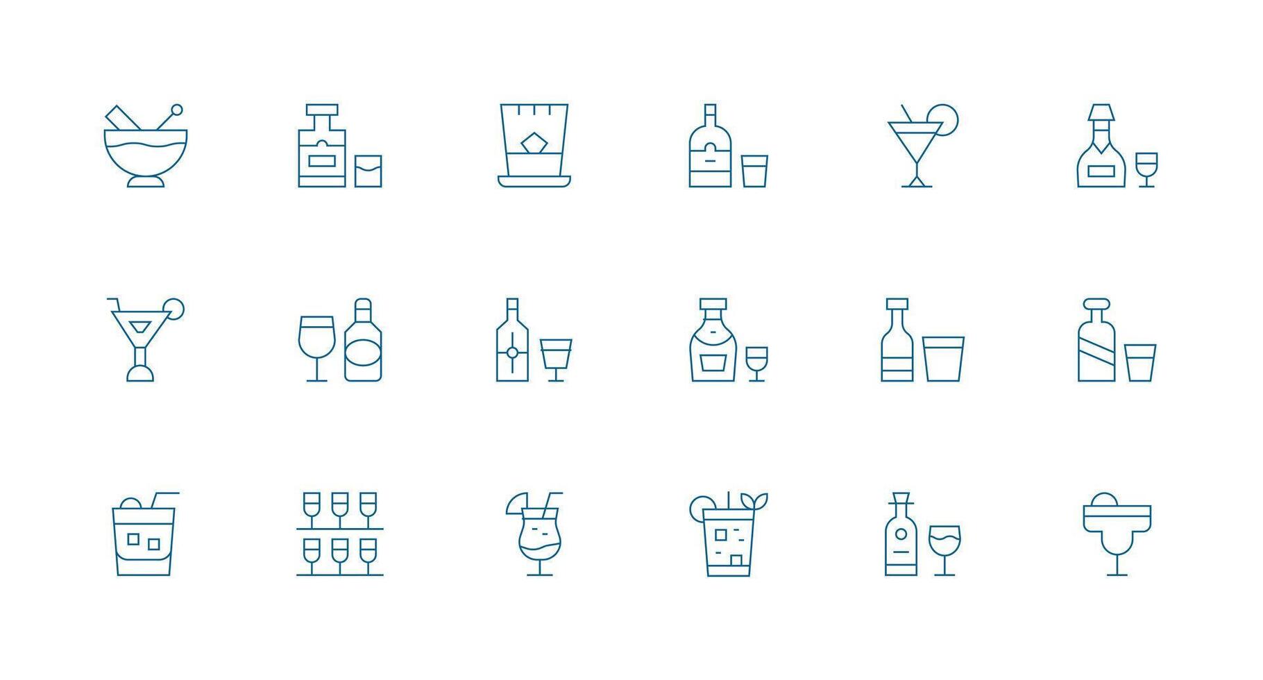Barware Icon Set with 18 Minimal Line Graphics Simple Icons for Interface and Wireframes vector